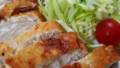 4.フライパンにサラダ油を入れて熱し、強めの中火で3を焼く。焼き色がついたら弱火にして裏返し、フタをして3~4分蒸し焼きにする。時間が経ったらフタを外し中火に戻して焼き色がつくまでさらに焼く。この脇で生しいたけをソテーする。