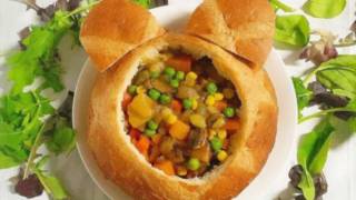 ミッキーマウス風ビーフシチュー 丸い器だけじゃつまらないので ミッキーぽく耳をつけてみました♡笑 * ✳材料(2人分)✳️ 丸型パン(ブール等) 2個 牛肉(カレー・シチュー用) 300g 薄力粉 13g 塩 小さじ1 ガーリック 1片 ... 2020.10.23キャラご飯