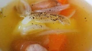 じゃがいもポトフ (材料)2人前 ・ジャガイモ 1個 ・タマネギ 1/4個 ・ニンジン 1/2本 ・ウインナー 2本 ・コンソメ顆粒 小さじ2 ・塩 少々 ・バター 5グラム ・水 600... 2020.11.13鍋もの