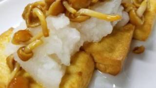 厚揚げ豆腐のなめこおろしのせ 材料)2人前 ・厚揚げ豆腐 1枚 ・なめこ 1/2袋 ・大根 200グラム ・ゆずぽん酢 適量(作り方) 1.厚揚げ豆腐はさっと熱湯にくぐらせ油抜きをする。なめこはさっと茹でる。 2.オーブントースターまたは魚... 2020.11.14大豆・豆腐