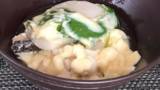 ➀ ライスペーパーは40℃くらいのぬるま湯に1回くぐらせ、軽く濡らした2枚重ねのキッチンペーパーの上に乗せる。