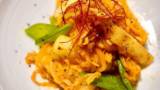 甘酸っぱいタレがからんだ鶏肉と野菜は