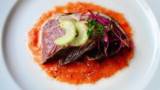 ③ボウルに挽肉と・の調味料を合わせよく捏ね、①の茄子に詰め、②のソースの鍋の中でお肉に火が通るまで蓋をして蒸し焼きにする。お皿に盛り付けヨーグルトソースの材料を混ぜたものをかけたら完成!