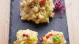 ①じゃがいもは丁寧に洗って皮は剥かずに一口大の大きさに切り、塩を振ってラップをし電子レンジ(600W)で6分チン