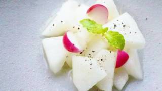 梨のマリネ 秋の果物の代表格の梨。瑞々しくて私も大好きな果実のひとつです。白ワインヴィネガーとみりんでサッパリと甘酸っぱく仕上げて梨の食感と風味が楽しめる一品です。最後にふりかける粗挽きこしょうとの相性もピッタリです。梨1/2個 白ワインヴィ... 2020.11.08野菜のおかず