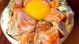 ❸お皿に温かいご飯とトッピングをのせわさび醤油をのせれば完成!
