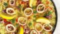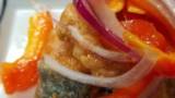 ④③のフライパンに有塩バター、レモン輪切り、塩こしょうと①を入れて弱火で軽く煮詰める。