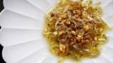 ⑧⑤を戻し入れ、塩、黒こしょうで味を調え、火からおろしお皿に盛って、粉チーズ、パセリをかける。