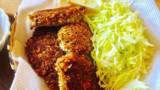 ⑤中火に熱したフライパンにオリーブオイルをひき、④を入れ両面がきつね色になるまで焼き、取り出す。