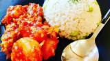 ⑤ブリに火が通り、アサリの口が開いたら器に盛り付け、レモンを添える。