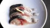 ②バットにブリを入れ、塩を両面にふりかけ、ラップをして10分おく。