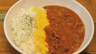 市販のルーでオムハヤシ フワトロ卵は油多め卵多めで強火でガーッとやって弱火でジュワッとやってゴムベラでスィーってやる感じで ・ハヤシライスのルー…半分 ・牛肩ロース薄切り(バラでもOK)…130g ・玉ねぎ…1個 ・水…4... 2020.11.08ごはん類