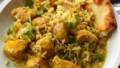 | 2小さなボウルにコーンスターチとストックを滑らかになるまで混ぜ、フライパンに混ぜる。ココナッツミルク、ライムジュース、カレーペースト、醤油を加える。沸騰させる。火を弱め、蓋をせずに5~6分、またはソースが少しとろみがつくまで煮る。ご飯と一緒に盛り付け、ココナッツを散らす。 |