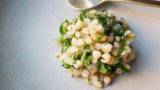 ② さつまいもは皮付きのまま1.5cm角に切り、水に3分さらして水気を切る。