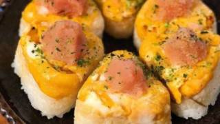 エリンギめん玉おにぎり 1.エリンギをバターと塩胡椒で炒めます ※飾り用と角切り用に分ける!2.麺つゆと塩で味付けした卵液を 1のフライパンに流し込む 軽く火が通ったら刻んだ大葉(8〜10枚)を入れて ささっと火を入れる。3.ご飯に2と明太... 2020.11.01ごはん類