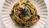 | 2パスタを鍋に加え、混ぜ合わせる。残りの材料をかき混ぜながら、パスタの水を加えてソースが好みの固さになるようにする。お好みでチーズを添える。 |