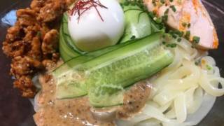 冷やし坦々麺 ◎ごまダレ ねりごま 大2 すりごま 大3 酒 大2 創味シャンタン 大1 焼肉のタレ 大1 酢 大1 砂糖 小2 ごま油 大1 にんにく 3g すりおろし 生姜 3g すりおろし簡単よく混ぜて完成 2020.10.30麺・パスタ