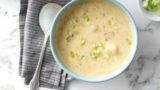 4〉粗熱が取れたら残りのだし汁、豆乳、白味噌と合わせてミキサーで攪拌する。