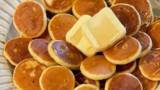 | 3生地を叩き潰す。軽く小麦粉を振った面に生地をのせ、厚くなるように丸める。薄力粉をまぶしたドーナツカッターで切る。油を塗った天板の上に1インチ(約2.5cm)間隔で並べる。蓋をして、約30分、2倍になるまで盛り上げる。 |