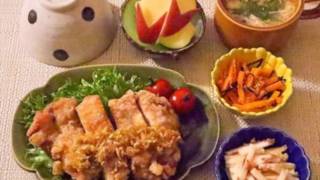 油淋鶏 <レシピ(2人前)> ◎油淋鶏(2人分) =材料= ・鶏もも肉…1枚 ・片栗粉…少々 <下味> ・にんにく&生姜チューブ…3〜4cm ・酒…大さじ2 ・醤油…大さじ1 <タレ> ・醤油…大さじ1 ・酒…大さじ1... 2020.10.16献立