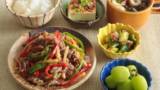 ⑤取り出しておいた彩り野菜をフライパンに戻し、塩胡椒で味を整えたら器に盛り付けきざみパセリを散らす。