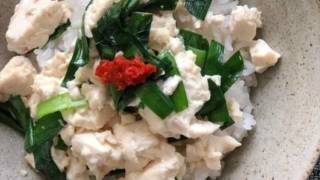 ニラと豆腐の炒め物 5分でできる簡単レシピ ご飯にどーんと乗せて食べる ヘルシーだし、美味しい‼️ 私は豆板醤をちょいのせ😊ニラと豆腐の炒め物ニラ 1束(3センチ幅切) 木綿豆腐 1丁(水きりしておく) A.塩 小1・こしょう 少々... 2020.10.27大豆・豆腐
